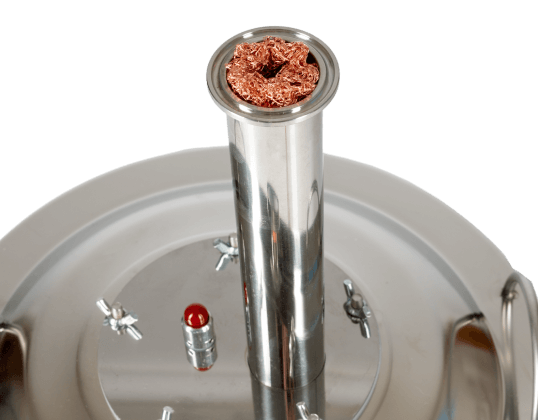 Конусная конструкция куба позволяет эффективно направлять спиртовые пары дальше в перегонную систему. Такая крышка — признак профессионального аппарата.
